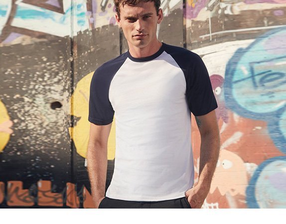 T-shirt manica corta raglan, girocollo con costina 1x1 in Lycra. Tessuto in colore contrastante su collo e maniche, struttura con busto tubolare. Classic Fit