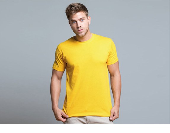 T-shirt adulto manica corta, realizzazione in tessuto tubolare, collo in lycra, fettuccia interna da spalla a spalla con ribattitura a doppio ago, doppia cucitura su collo, maniche e girovita.